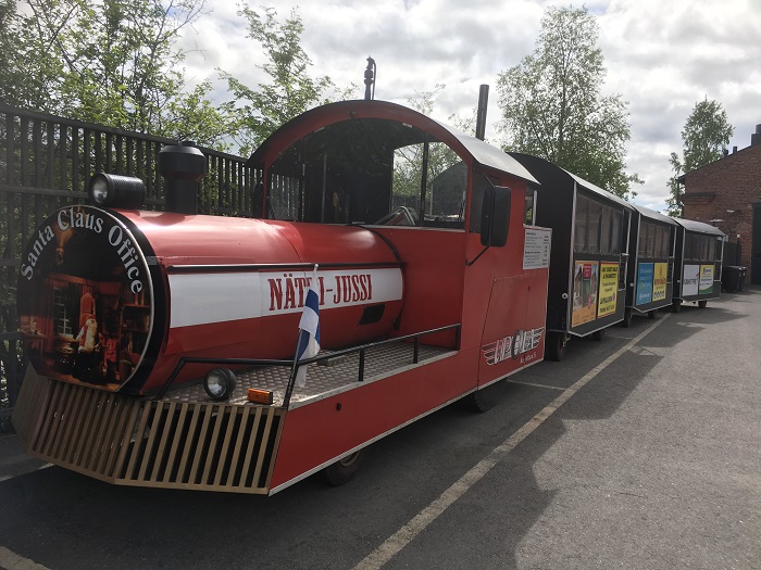 The miniature street train Nätti-Jussi has returned again to Rovaniemi like every year to help people and tourists sightsee while