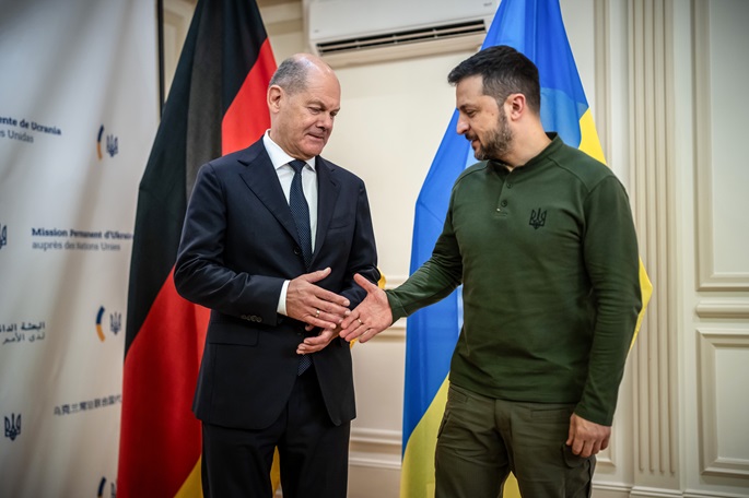 Chancellor Olaf Scholz insisted on Monday that he will not loosen the rules for the use of German weapons in