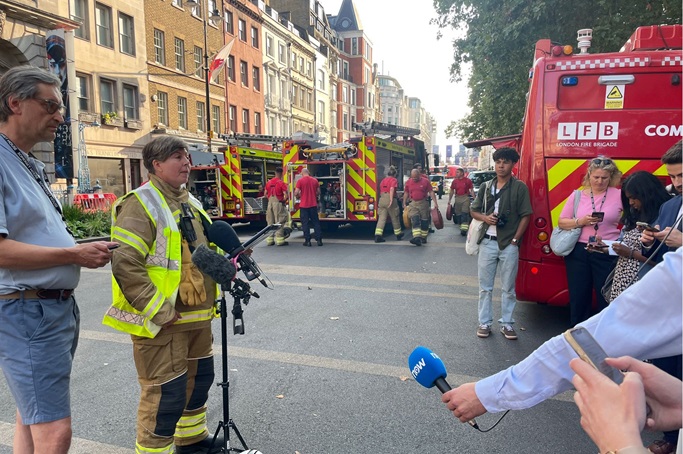 Around 100 firefighters and fifteen fire engines were dispatched to Somerset House on Saturday morning in response to a fire