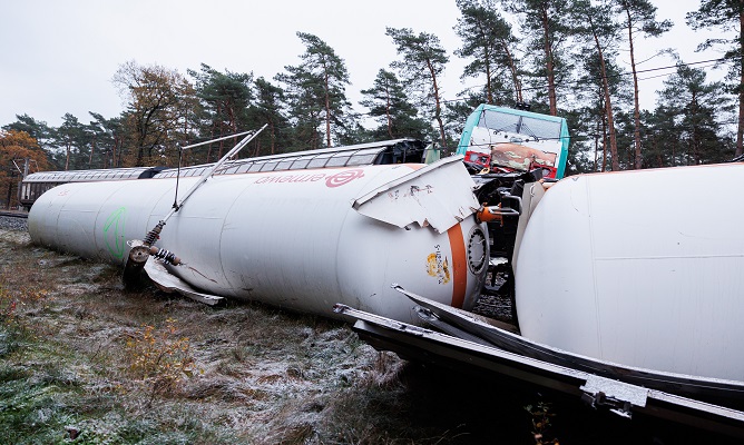 The fire brigade began pumping explosive propane gas out of train carriages on Sunday, three days after a collision between