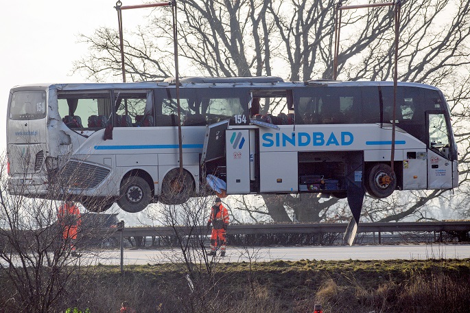 A bus accident near the German city of Magdeburg, in which the vehicle flipped, injured 35 people, the motorway authorities