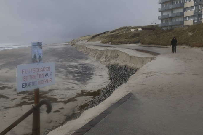 The North Sea German island of Wangerooge lost about 90% of its bathing beach during a powerful storm that hit