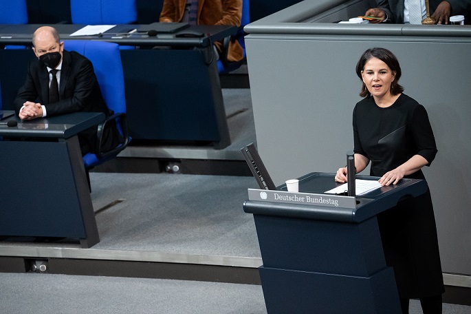 Foreign Minister Annalena Baerbock stood firmly behind Germany's refusal to send arms to Ukraine to help the country defend against