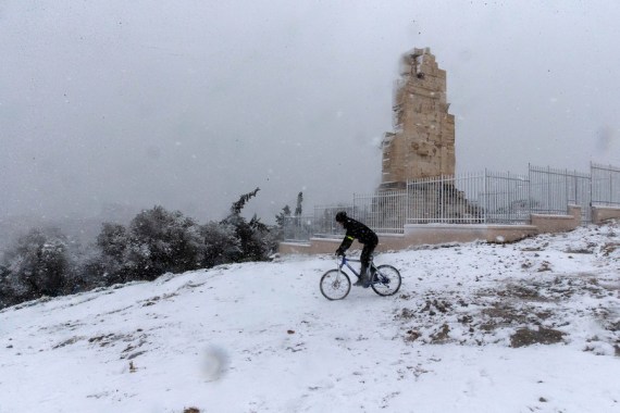 An intense cold front was sweeping through Greece on Monday, causing travel disruptions and power outages for several hours in