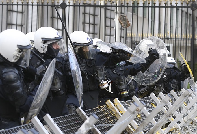 Police fired water cannon and tear gas during a protest against COVID-19 restrictive measures in Brussels on Sunday, reported Xinhua.