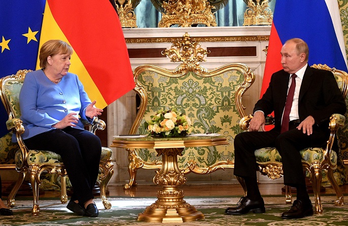 German Chancellor Angela Merkel began her visit to Moscow with a call for continued dialogue despite significant political tensions between