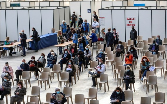 A drive-in vaccination center was opened on Tuesday in southern France to further ramp up vaccination pace and counter accelerating