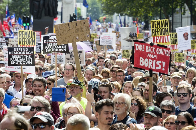 Thousands of demonstrators on Saturday took to the streets across Britain in protest against British Prime Minister Boris Johnson's decision