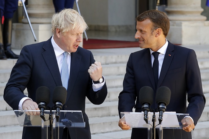 Visiting British Prime Minister Boris Johnson started talks with French President Emmanuel Macron on Thursday afternoon, with the thorny issue
