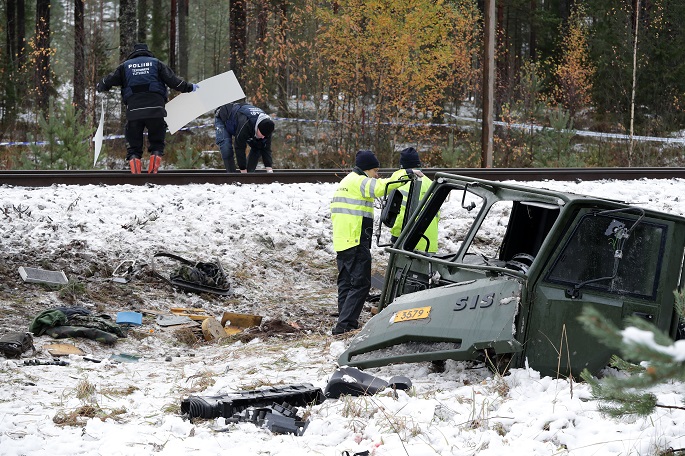 A Frontier Guard truck with 12 conscripts in its platform tent collided with a car in Liperi, Eastern Finland, early