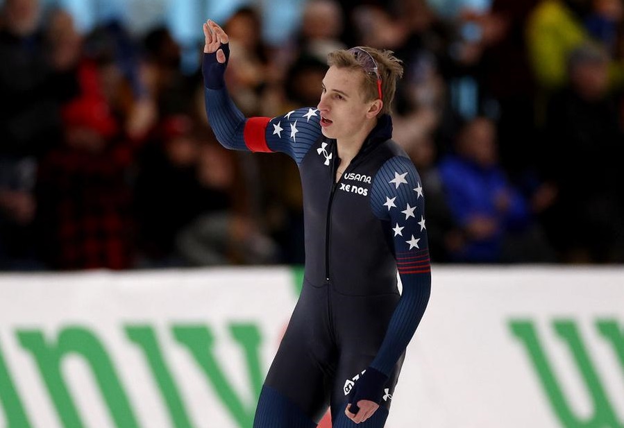 Jordan Stolz of the United States repeated his four-gold run at the speed skating World Cup last weekend as he