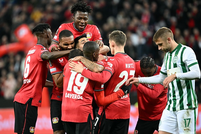 Bayer Leverkusen took a first step towards the Europa League quarter-finals with a 2-0 victory over Hungarian champions Ferencvaros on