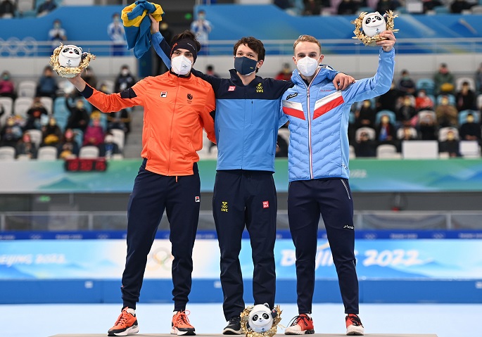 World record holder Nils van der Poel bagged his first Olympic gold medal in the men's 5,000m speed skating competition