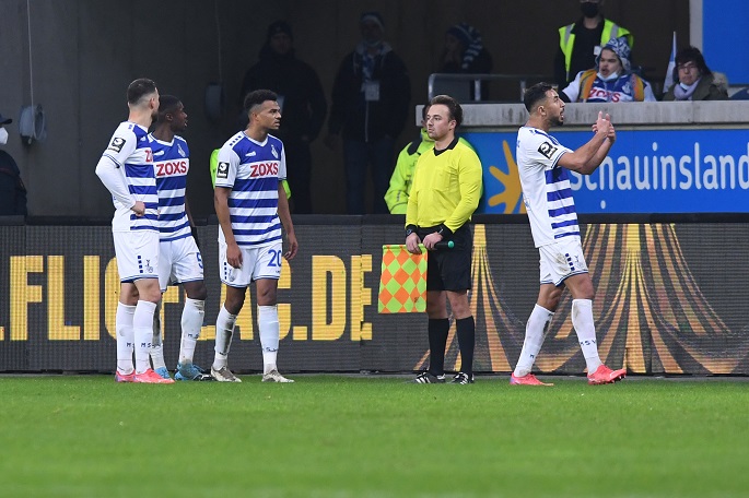 A German third-division match between Duisburg and Osnabrueck was abandoned on Sunday after a supporter racially abused a visiting player,