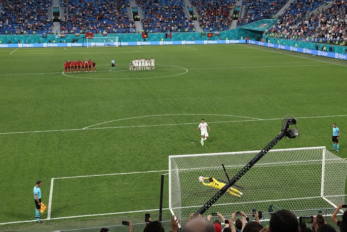 Three-time European champions Spain needed to fight until penalty shootout to see off 10-man Switzerland in St Petersburg on Friday,