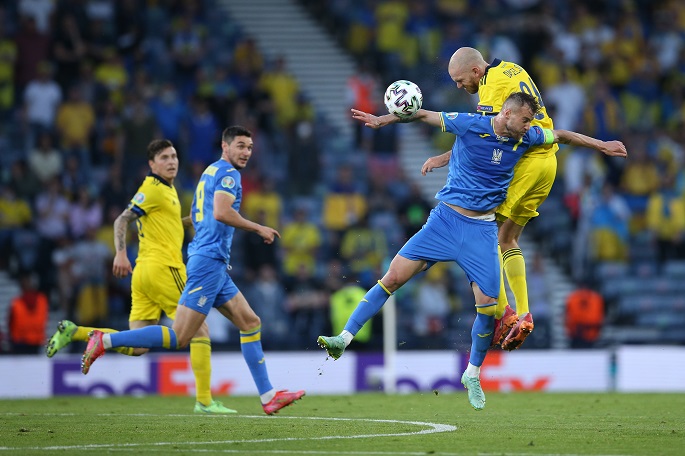 Ukraine advanced into the European Championship quarterfinals for a second time after overpowering ten-men Sweden by courtesy on Artem Dovbyk's
