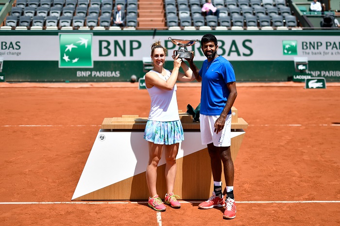 Gabriela Dabrowski of Canada and Rohan Bopanna of India saved two match points to claim the mixed doubles title at