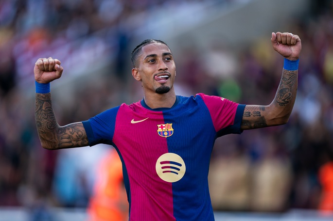 Brazilian winger Raphinha scored a hat-trick on Saturday as FC Barcelona maintained their 100 percent start to the new La