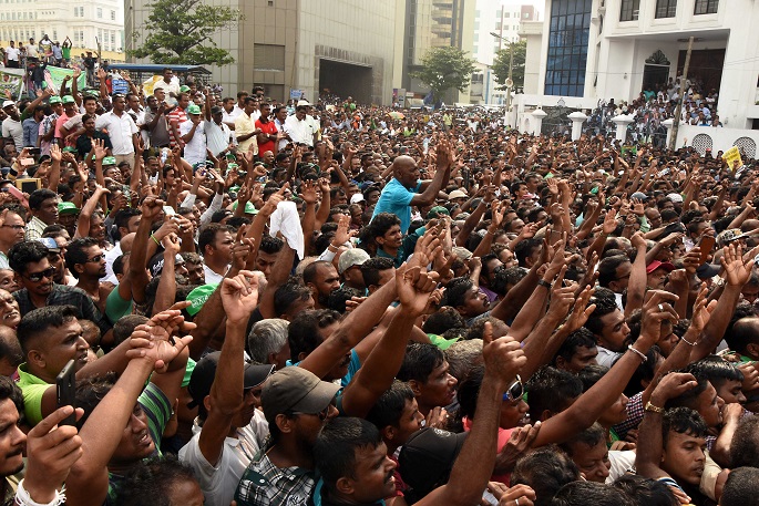 Tens of thousands of people gathered in Sri Lanka's capital Colombo on Tuesday to urge President Maithripala Sirisena to convene