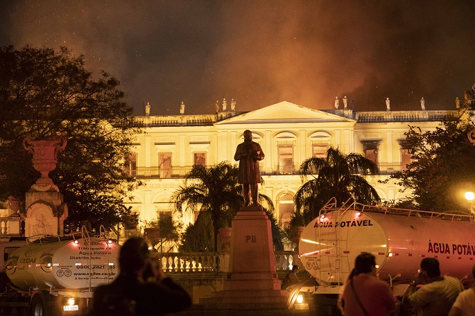 Rio de Janeiro firefighters on Monday battled and brought under control a devastating fire that destroyed Brazil's prestigious National Museum.