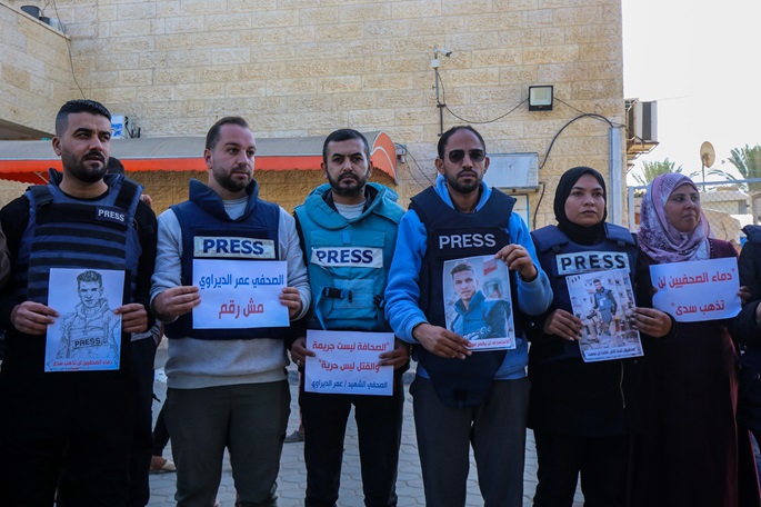 Dozens of journalists in Gaza on Saturday called on the international community to take urgent action to protect them from