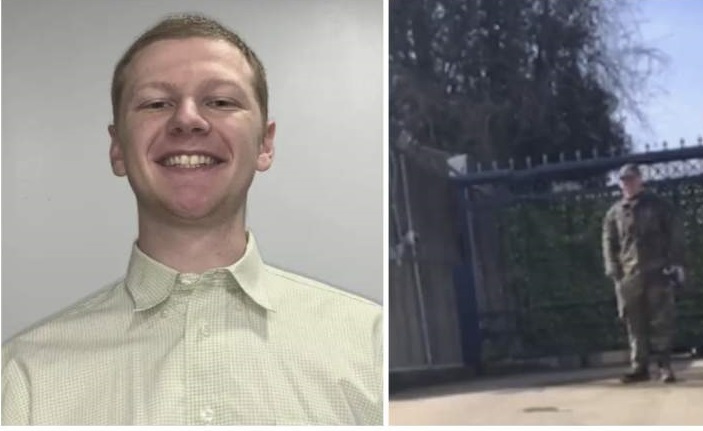 A U.S. Air Force member who set himself on fire outside the Israeli Embassy here "in an apparent protest" against