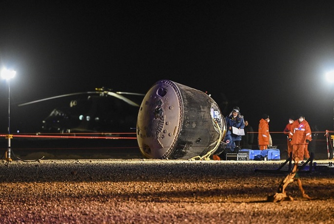 Three Chinese astronauts on board the Shenzhou-14 manned spaceship returned to Earth safely on Sunday, after accomplishing many "firsts" during