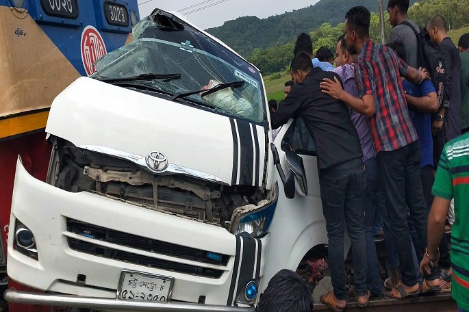 At least 11 people were killed when a train ploughed into a tourist minibus on Friday at a rail crossing
