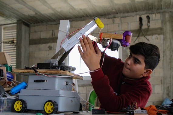 Mohammed al-Halaq, a Palestinian boy from Khan Younis in southern Gaza Strip, has made many electronic devices and robots using