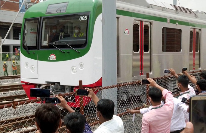 Bangladesh's first metro rail in the capital Dhaka made the trial run Sunday on a section of the 20.1-km project,