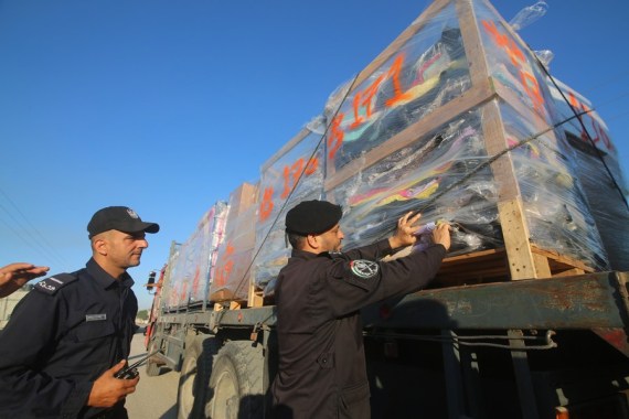 For the second day in a row, dozens of trucks loaded with agricultural goods and clothes arrived at the Kerem