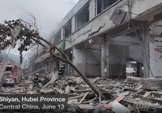 A gas explosion in central China's Hubei Province on Sunday morning has left 12 people dead and more than 100