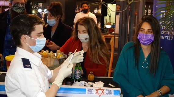 At the Jenia bar at Dizengoff Square in Israel's Tel Aviv, curious passersby were lured with free beer and coffee