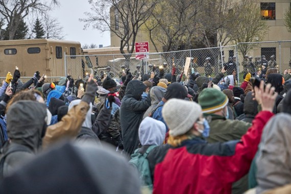 Protesters clashed with police for a third night on Tuesday night in Brooklyn Center, in the U.S. state Minnesota, in