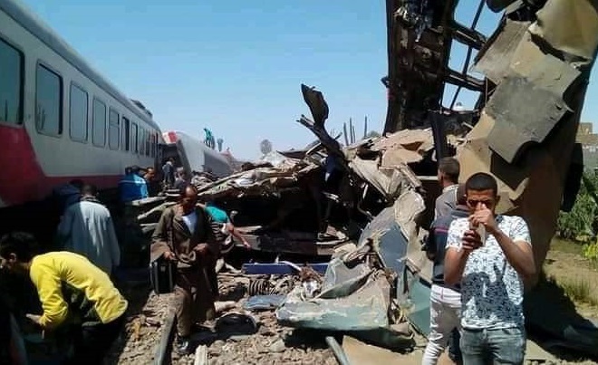 At least 32 were killed and 108 others wounded as two trains collided on Friday in Egypt's southern province of
