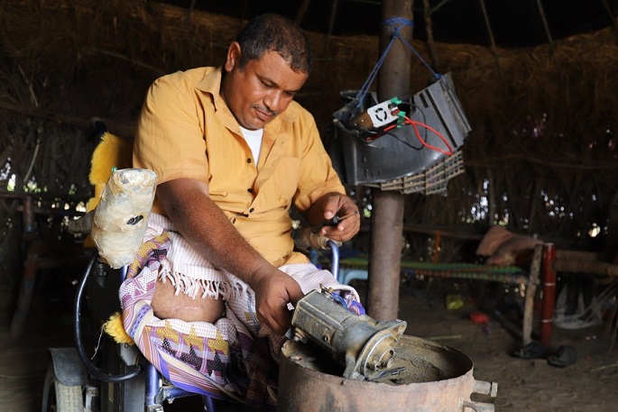 Khamj Shouei, a car mechanic, is one of the many victims of landmines in Yemen's northern province of Hajjah, reported