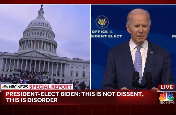 U.S. President-elect Joe Biden condemned what he called "insurrection" at the U.S. Capitol on Wednesday, after some supporters of the