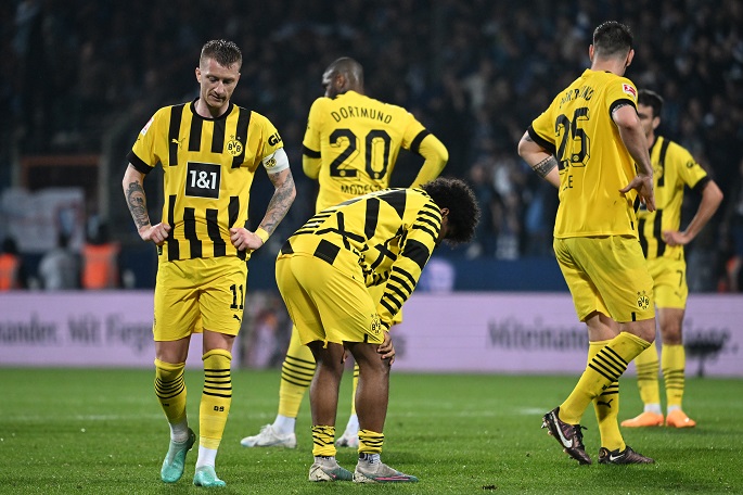 Dortmund kept up the momentum after the break and got the fourth when Bellingham ran across half of the field, his long range blast was palmed against the crossbar by goalkeeper Koen Casteels but the back spin made the ball go in after bouncing to the ground.