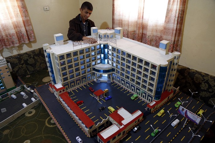 Using paper boards and hot glue, Musheer Basheer Al-Hzmi, a 16-year-old Yemeni boy, builds models of famous buildings in the capital of Sanaa and recreates elaborately the city he lives in and loves, reported Xinhua.