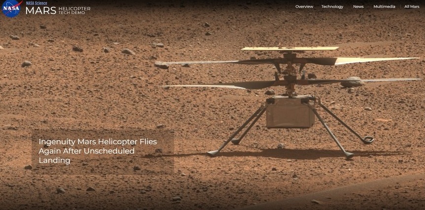The helicopter, named Ingenuity, arrived at Mars' Jezero Crater on Feb. 18, 2021, attached to the belly of NASA's Perseverance rover. The helicopter is a technology demonstration to test powered flight on another planet for the first time.